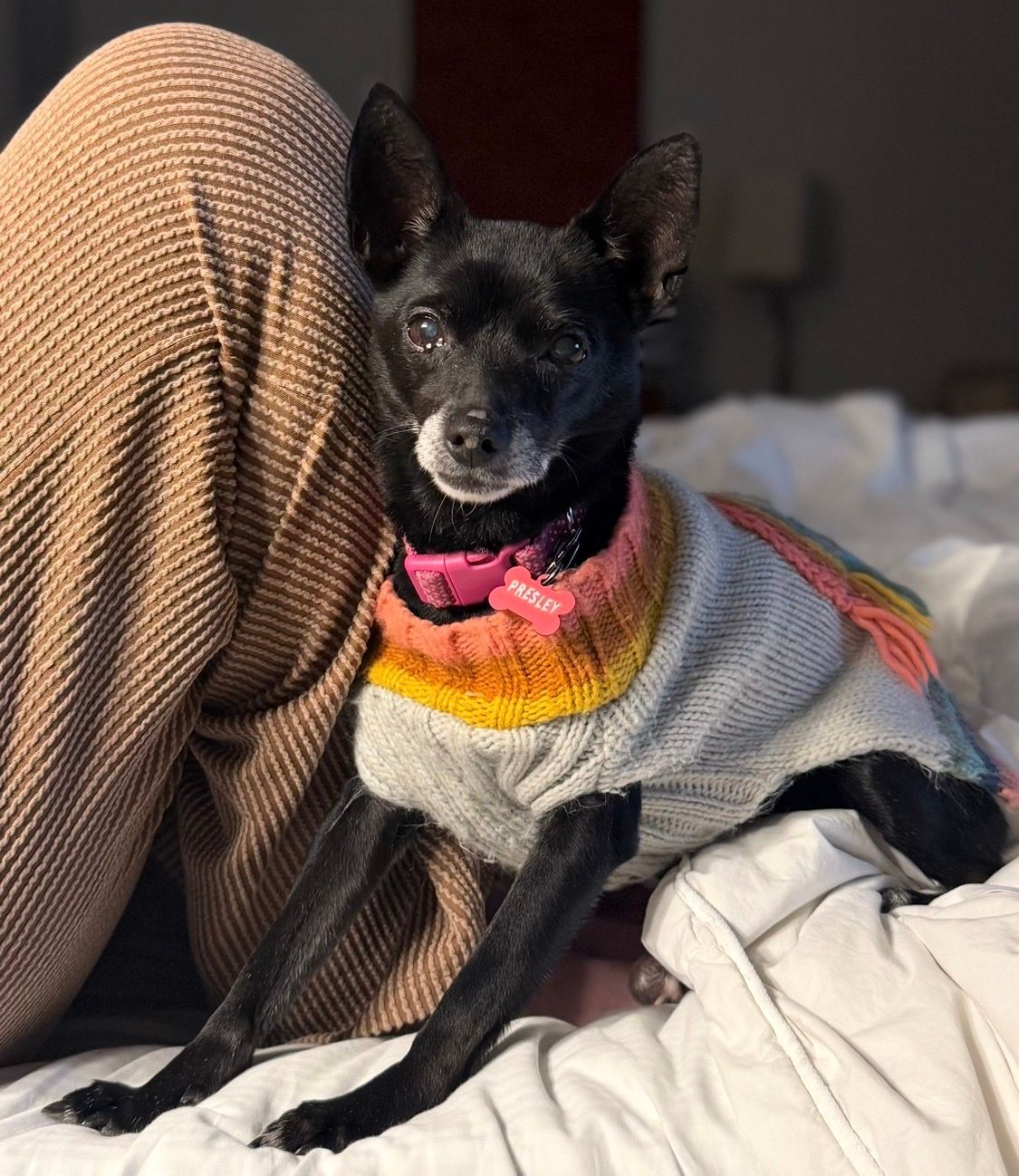 After retiring from the U.S. Marine Corp, Vietnam veteran James worked swing shifts for over 25 years and found he had difficulty sleeping. Since Pogo became his sidekick, however, James sleeps more soundly these days. Pogo signals when it’s bedtime and they hit the sack together every night. With the arrival of colder nights, James reports that Pogo even sneaks under the bedcovers. Pogo goes everywhere with James—and he’s a front-seat rider (no back seat for this pup). And Pogo’s looking forward to a summer road trip to Oklahoma to visit James’s grandchildren. When not on 5-mile walks down by the river or other outdoor adventures, James and Pogo hang out inside or on the back patio. That’s where Pogo can keep an eye out for his neighborhood friends at the dog park—or for the squirrels, birds, deer. All our gratitude to James for his military service—and for giving Pogo his forever home.