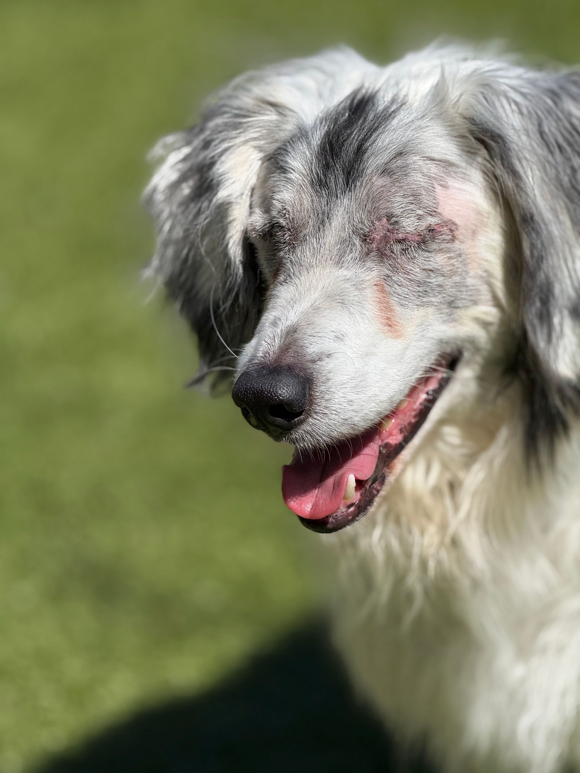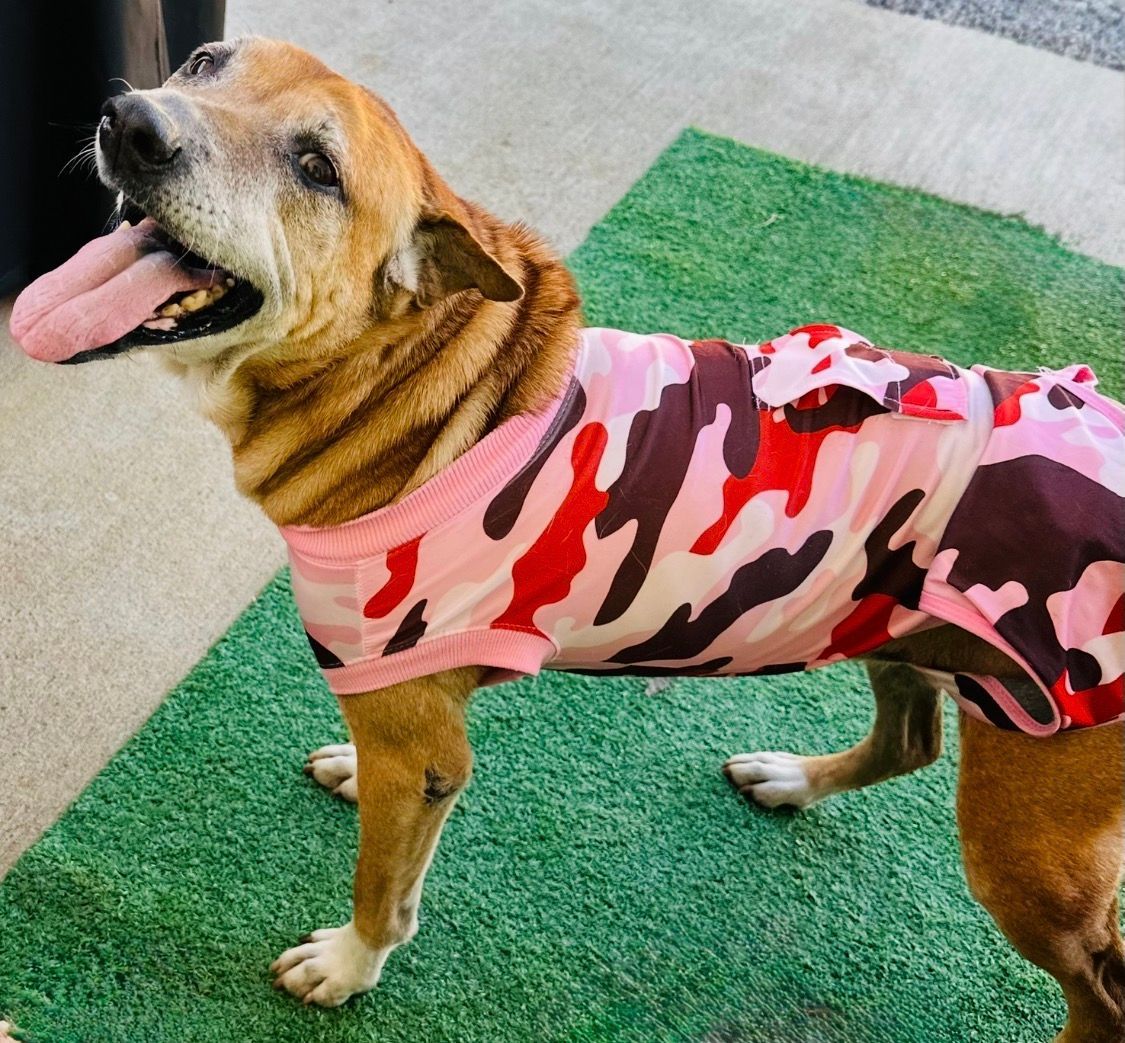 After retiring from the U.S. Marine Corp, Vietnam veteran James worked swing shifts for over 25 years and found he had difficulty sleeping. Since Pogo became his sidekick, however, James sleeps more soundly these days. Pogo signals when it’s bedtime and they hit the sack together every night. With the arrival of colder nights, James reports that Pogo even sneaks under the bedcovers. Pogo goes everywhere with James—and he’s a front-seat rider (no back seat for this pup). And Pogo’s looking forward to a summer road trip to Oklahoma to visit James’s grandchildren. When not on 5-mile walks down by the river or other outdoor adventures, James and Pogo hang out inside or on the back patio. That’s where Pogo can keep an eye out for his neighborhood friends at the dog park—or for the squirrels, birds, deer. All our gratitude to James for his military service—and for giving Pogo his forever home.